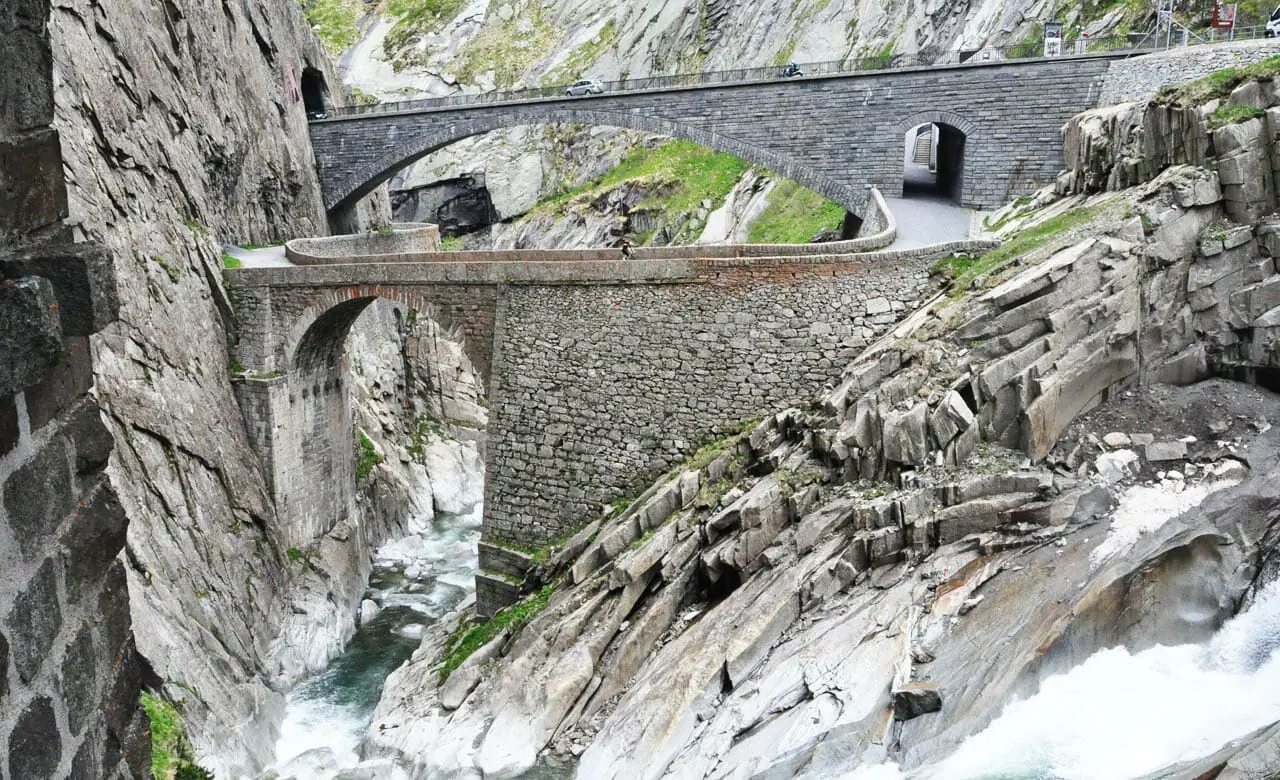 大约800年前,在瑞士阿尔卑斯山脉的圣哥达山口,人们与魔鬼达成了一项交易:魔鬼会建造一座横跨罗伊斯河的桥梁,造好之后,就要夺去第一位过桥者的灵魂。由于这座桥实在太难造,造桥者们只好答应了魔鬼的条件。桥建好后,却没有人作为祭品被送到桥上,只有一只羊被赶着过了桥。魔鬼勃然大怒,于是找来一块重达220吨的石头,想要砸毁这座新建好的桥。但是魔鬼的报复未能得逞,因为有个女人挥舞着十字架拦住了他的去路。魔鬼见状,被吓得魂飞魄散,惊惶逃脱时掉落了那块石头。这块石头就是如今位于格申恩(Göschenen)的赫赫有名的“魔鬼石”。阿尔卑斯山一带的村民取得了胜利,但这并不是唯一的一次。近年来,他们另辟蹊径,取得了新的成功。取胜之地距离瑞士安德马特魔鬼桥和魔鬼石都只有一箭之遥。