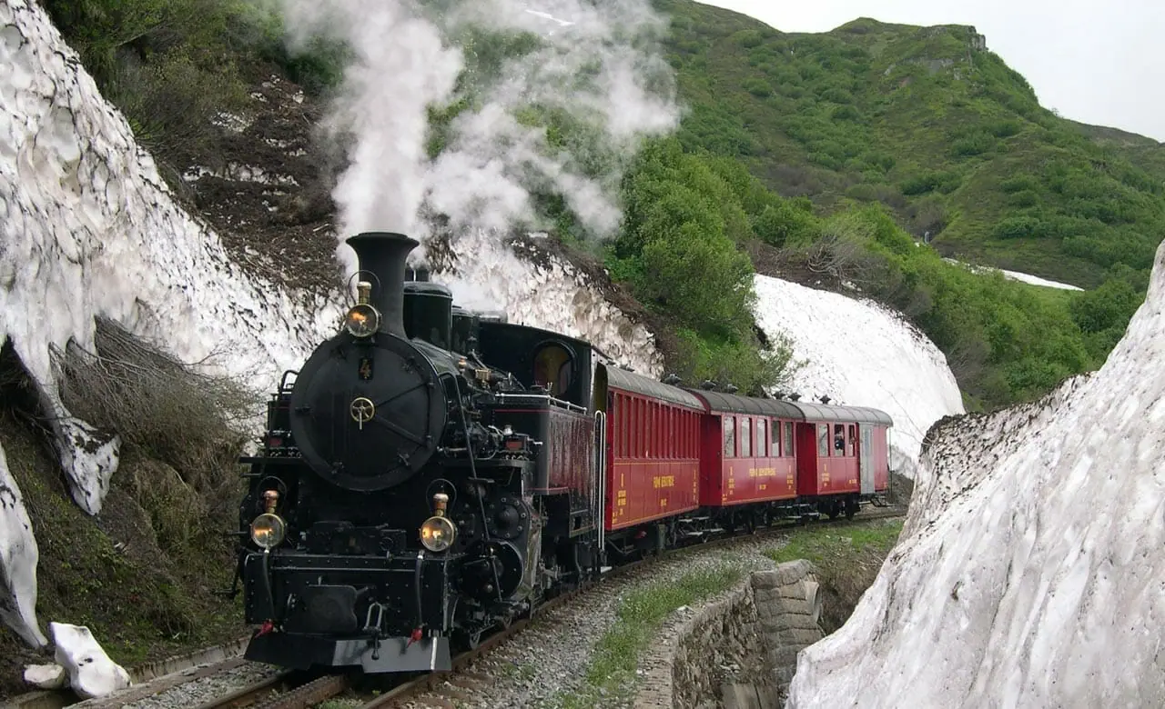 传统蒸汽动力机车仍然穿行在蜿蜒的阿尔卑斯山路线上(图片来源:瑞士金融与房地产集团)。